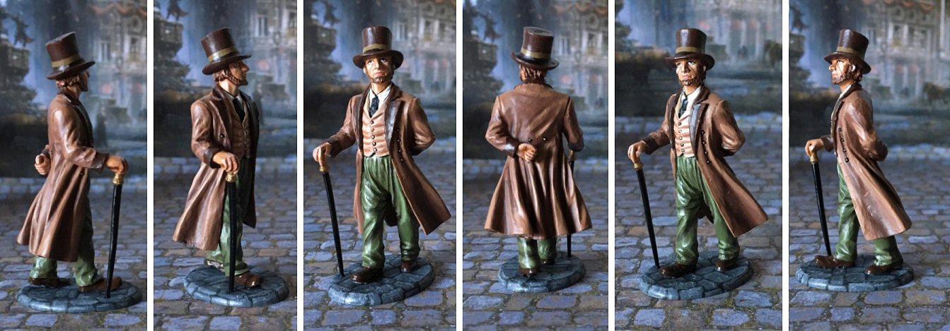 The original models are retired 28mm giant bats made by Masquerade Miniatures, probably as Warhammer proxies. Being as big as humans in 28mm means they are still a respectable child-sized monstrosity in 60mm and the added wingspan makes them a terrifying sight indeed. I had to sightly convert them to remove some off-scale details and then rebase them to match my other figures. I added a repainted Lemax fire hydrant as a support for one of them, which also helped to raise him at eye-height for the 60mm humans.